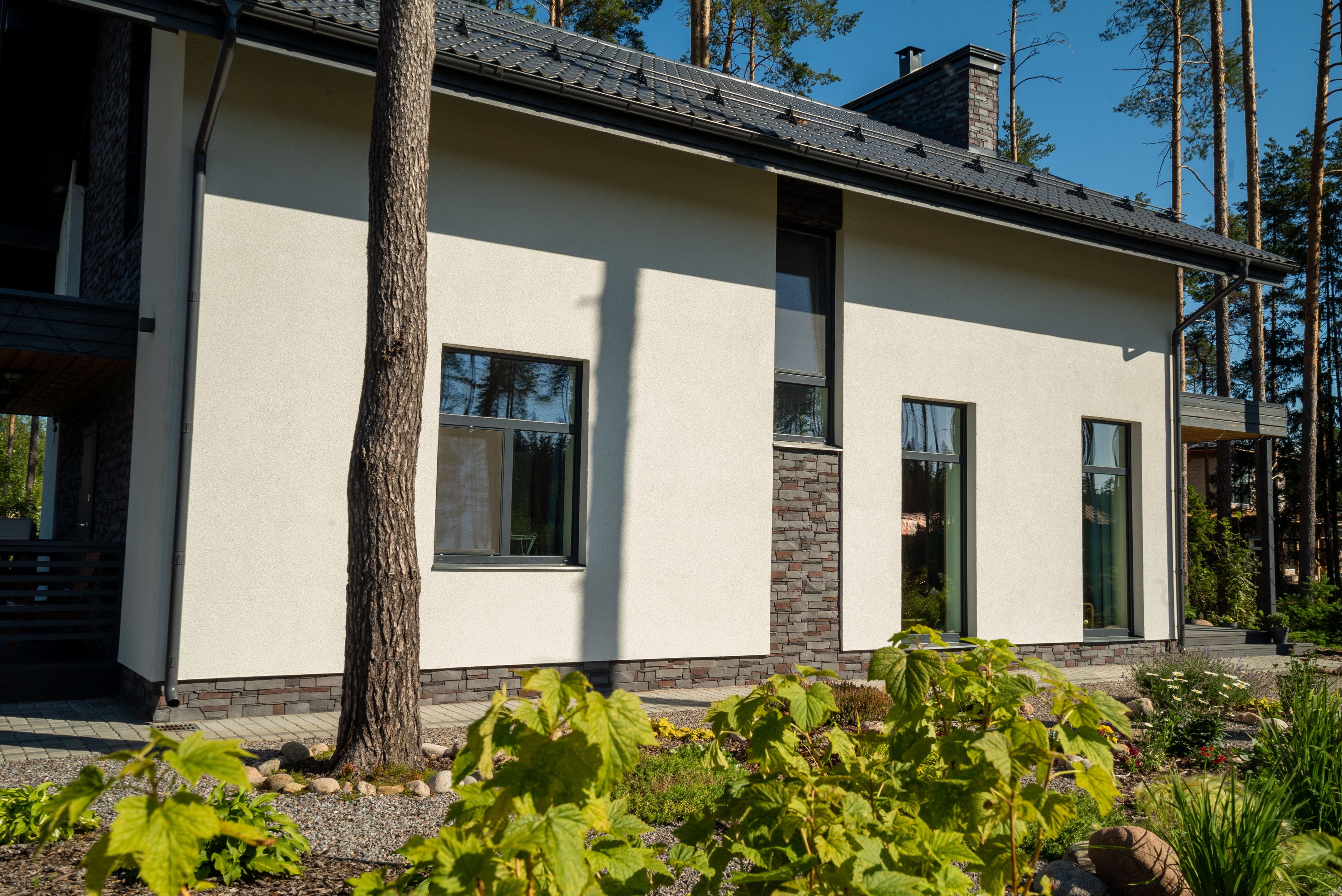 – Отделка фасада: цоколь, стены, карнизные свесы