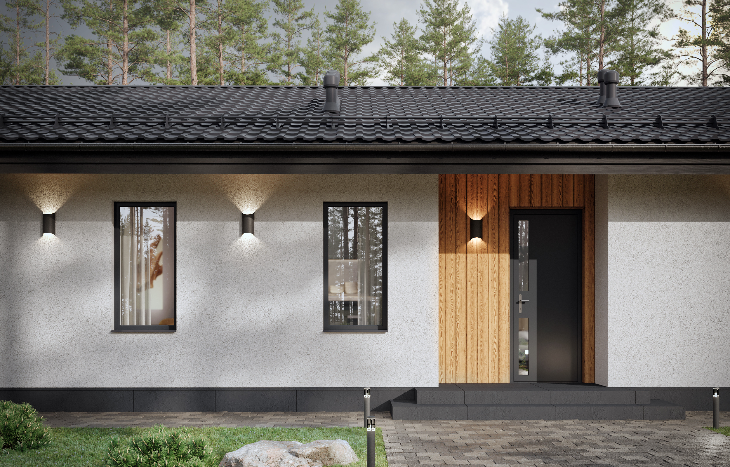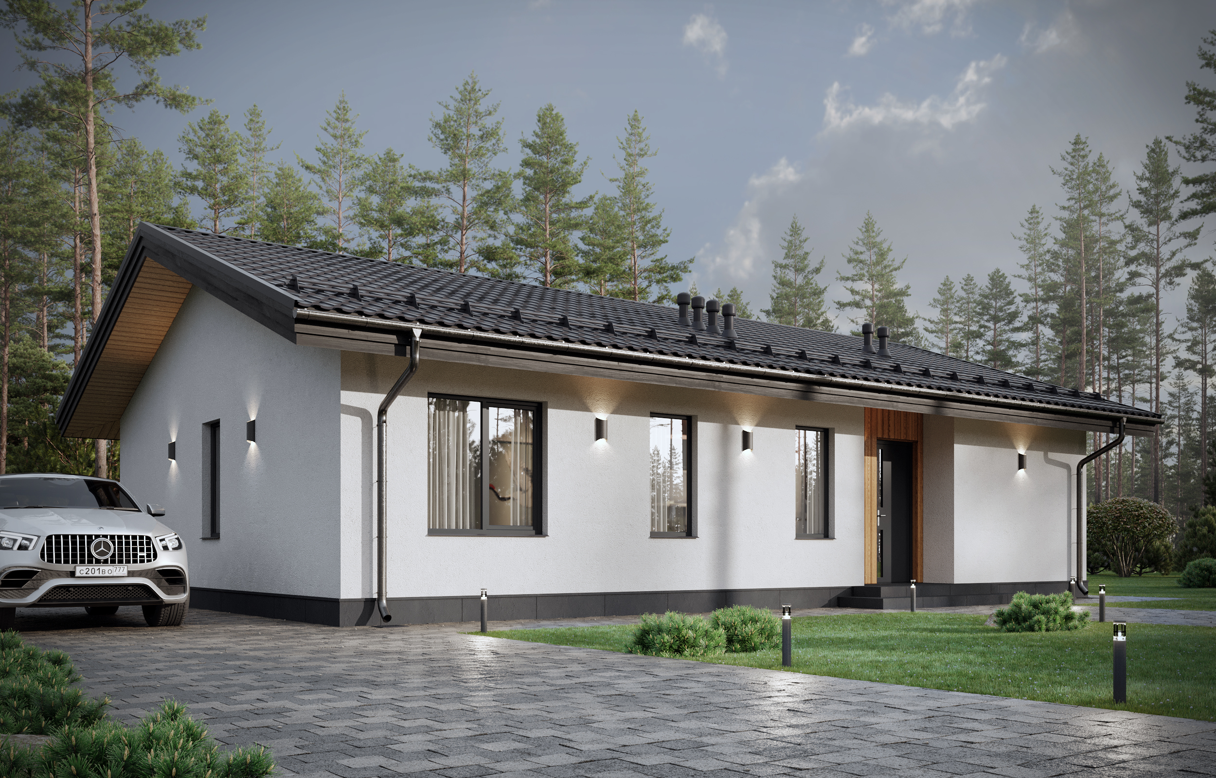 Это наш новый проект одноэтажного каменного дома из газобетона, который послужит отличной альтернативой городской квартире. Мы соединили многолетний опыт проектирования с вашими пожеланиями к компактному загородному дому.