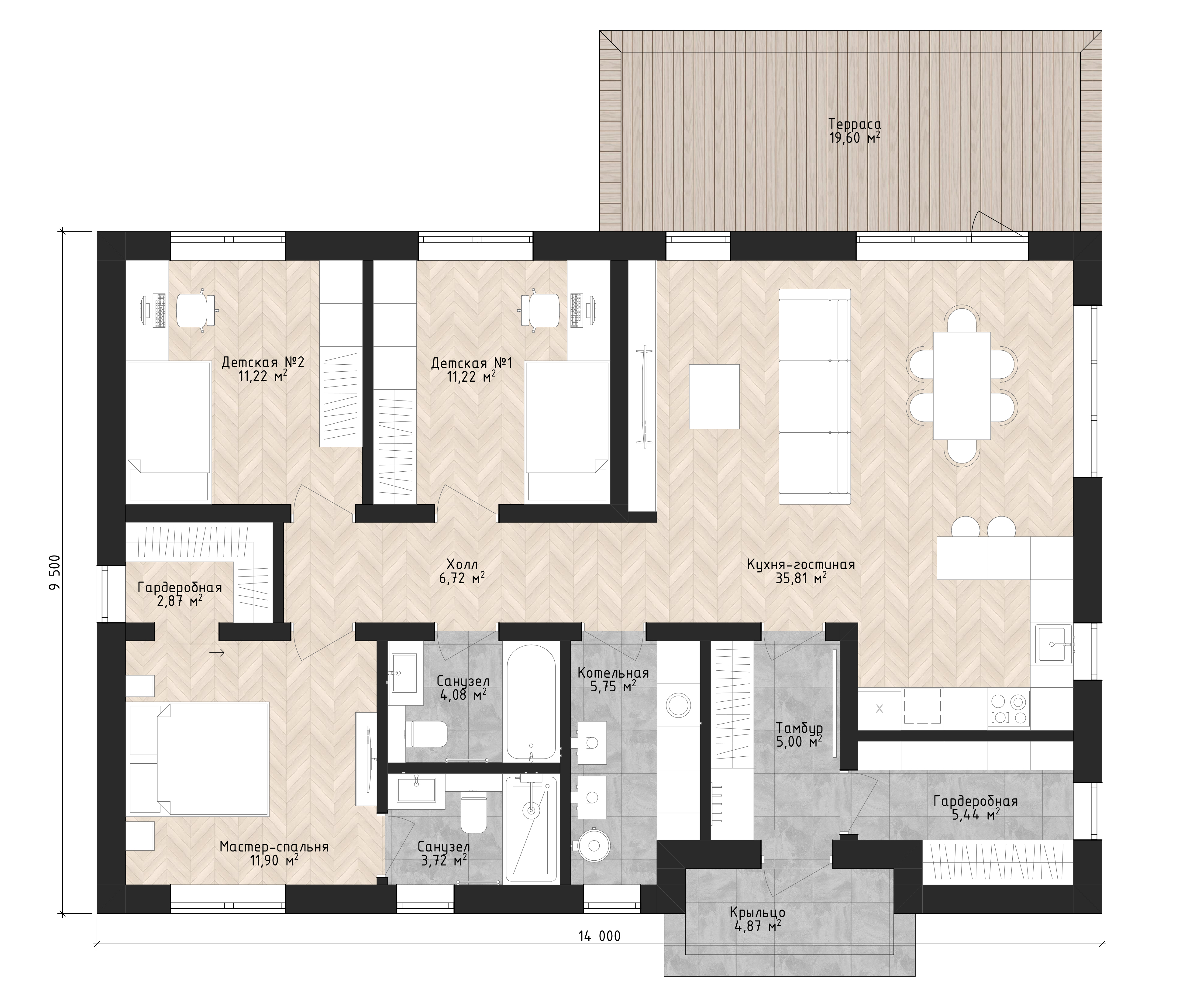 Площадь дома – 217 м²